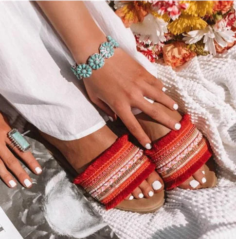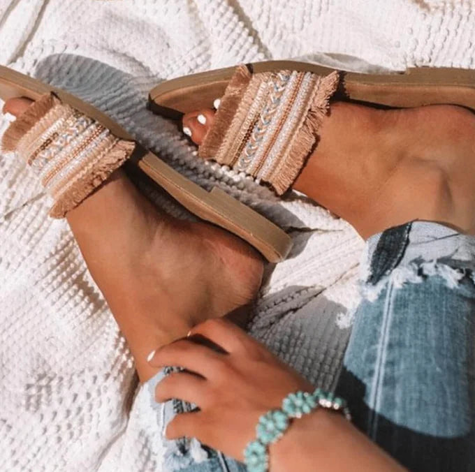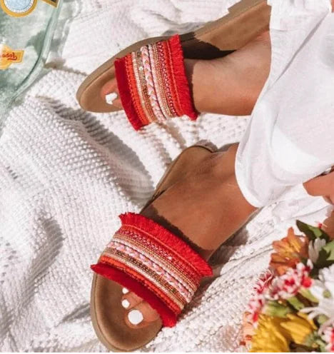 Step into style and comfort with our latest collection of European and American Women's Flat Sandals. Perfectly designed for leisure, these sandals are a must-have for any fashion-forward woman looking to elevate her summer wardrobe. Made from high-quality artificial PU, the upper material promises durability while maintaining a chic aesthetic. The breathable inner PU lining ensures your feet stay cool and comfortable, no matter the occasion. With a unique viscose sole technology, these sandals provide an excellent grip and support, making them ideal for both leisurely strolls and casual outings. Available in two stunning colors, red and beige, you'll have no trouble finding the perfect match for your outfit. Choose from a variety of sizes ranging from 35 to 43 to find your ideal fit. Check out our stunning visuals below to see these beauties in action: