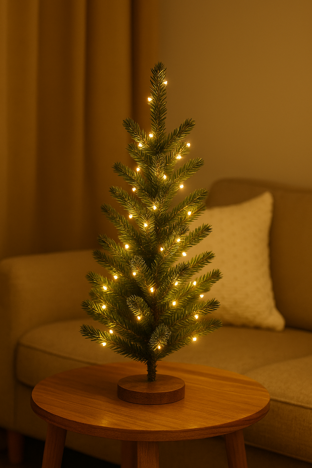LED Işıklı Mini Yılbaşı Ağacı – Sıcak Işık Dekor | Masaüstü Yılbaşı Süsü